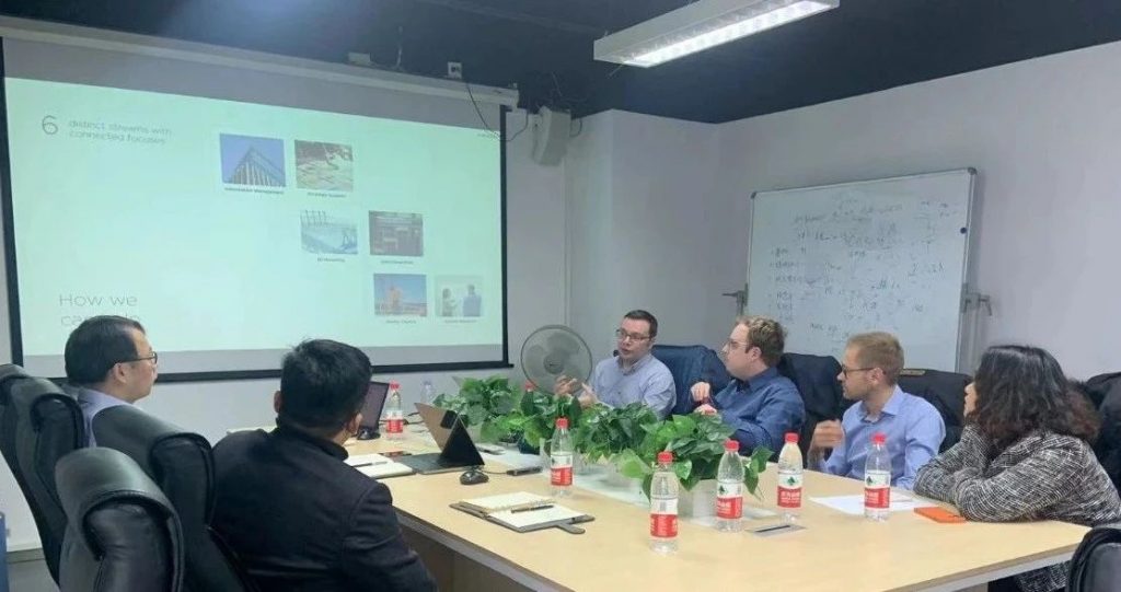 座談會上,陳濱總對“歐洲地平線”項目專家組一行的到訪表示熱(rè)烈歡迎。他(tā)從(cóng)産品架構、管理(lǐ)架構、業務模式以及企業的社會責任等方面介紹了北京原創方案科技有限公司的整體(tǐ)情況。他(tā)表示,畢加索公司始終高度關注建築行業信息化數字化發展,持續關注環境友好的建築全生(shēng)命周期解決方案,尤其是建築垃圾處理(lǐ)、建築垃圾減量化等,希望通過“綠色建材采信應用數據庫”和“綠色建材采信應用與數據服務平台”帶動中國(guó)綠色建材産業發展、建築品質提升以及建築領域減碳策略,也始終緻力于推動國(guó)内從(cóng)BIM時代向“BIM+”時代的邁進,在建設新型智慧城(chéng)市的進程中貢獻自(zì)己的力量,在建築業雙碳目标達成的道路(lù)上承擔自(zì)己的社會責任,也表達了對中歐相(xiàng)關技術(shù)領域進一步加強合作(zuò)的熱(rè)切期待,希望通過推動中歐技術(shù)領域深度融合,實現優勢互補,互相(xiàng)促進。